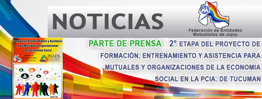 En el marco del Proyecto de Formación, Entrenamiento y Asistencia para Mutuales y Organizaciones de la Economía Social presentado por la Federación de Entidades Mutualistas de la Provincia. de Jujuy y aprobado por el INAES para ser ejecutado en las Provincias: de Salta, Tucumán y Santiago del Estero, nuestra Federación dará continuidad en la Provincia de Tucumán la 2° Etapa del Proyecto con el lema: "Emprender es una forma de pensamiento que moviliza al sujeto a la construcción de ideas novedosas; demanda la aplicación de tareas innovadoras; así como la consolidación de proyectos que requieren decisión y esfuerzo"
