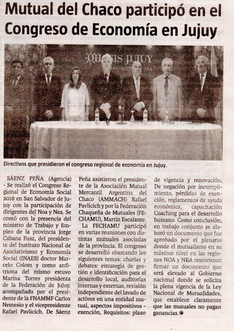 PARTE DE PRENSA DE LA FEDERACIÓN DE MUTUALES DEL CHACO